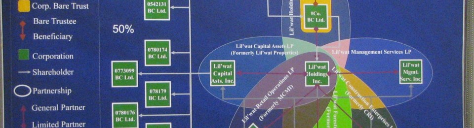 The fundamental objective of the state of Canada in the Land Code process, as with the BC treaty process and the suite of legislation restricting First Nations in Bill C-45, is to have every First Nation operate as a municipality. The lawfirm Ratcliffe and Co. prepared the “municipal” diagram of Lil’wat featured with this article: that is Canada’s vision for Indigenous Peoples. Total economic and cultural assimilation.
