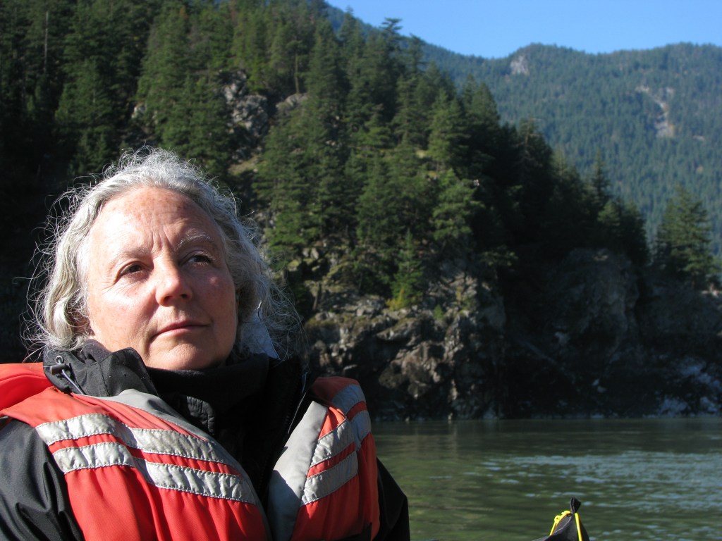 Biologist Alexandra Morton rafting down the Fraser River. Arriving at Jericho Beach in Vancouver, the hundreds of people on the “migration” campaign marched to the Cohen Commission of Inquiry into the Fraser Sockeye Collapse of 2009, downtown. Photo by Kerry Coast.