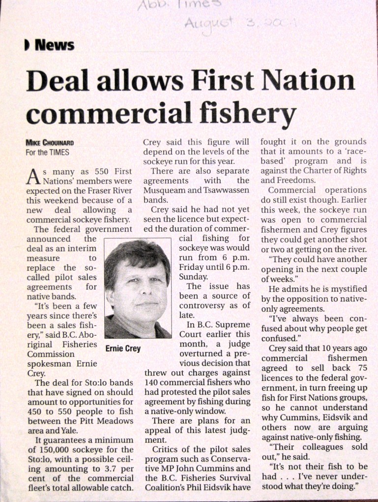 “How are we supposed to live? We are cut off from our traditional fishery while DFO allows sport fishermen to fish from the Queen Charlottes right up the Fraser River snagging fish from stocks that are in trouble.” Gerald Roberts