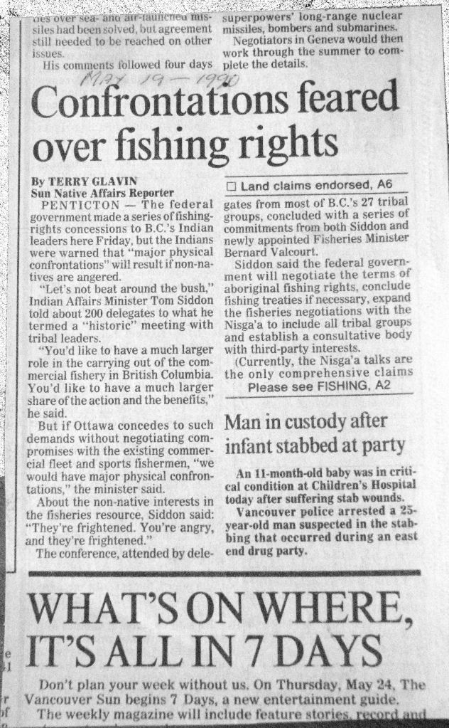 The Vancouver Sun: Confrontations feared over fishing rights
