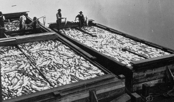 The Fraser sockeye population is thought to have been 100 million fish every fourth year on the dominant cycle line, and 30 million in the low years.