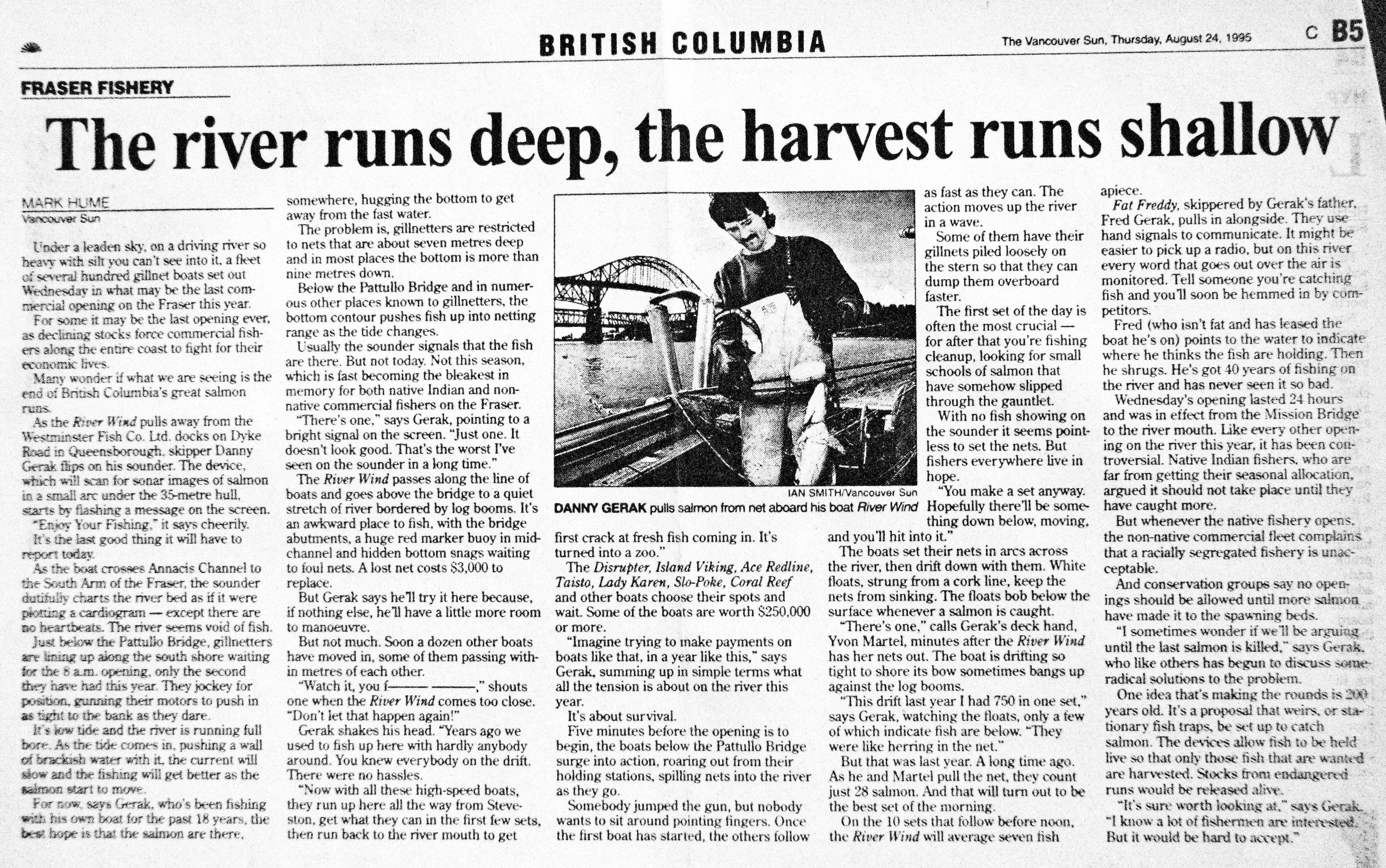 The Vancouver Sun: River runs deep, harvest runs shallow
