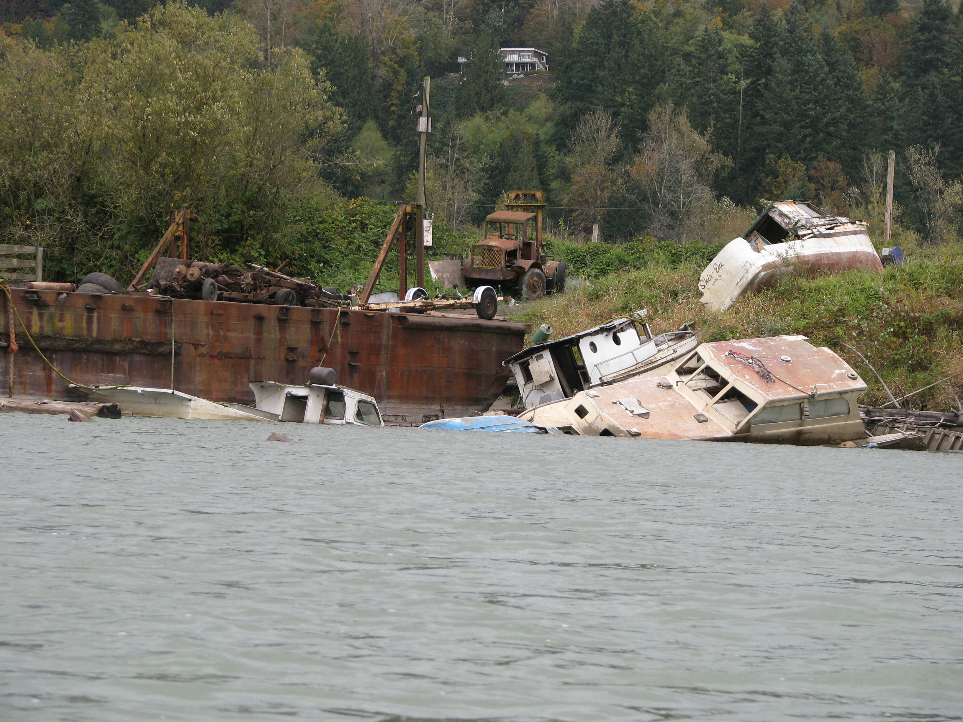 Cars, boats, retired BC ferries, and other garbage can be found dumped along the banks of the Fraser River throughout the lower reaches. Photos: Kerry Coast