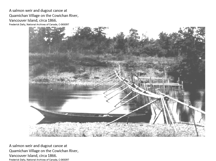 at Quamichan Village on the Cowichan River, Vancouver Island, circa 1866.