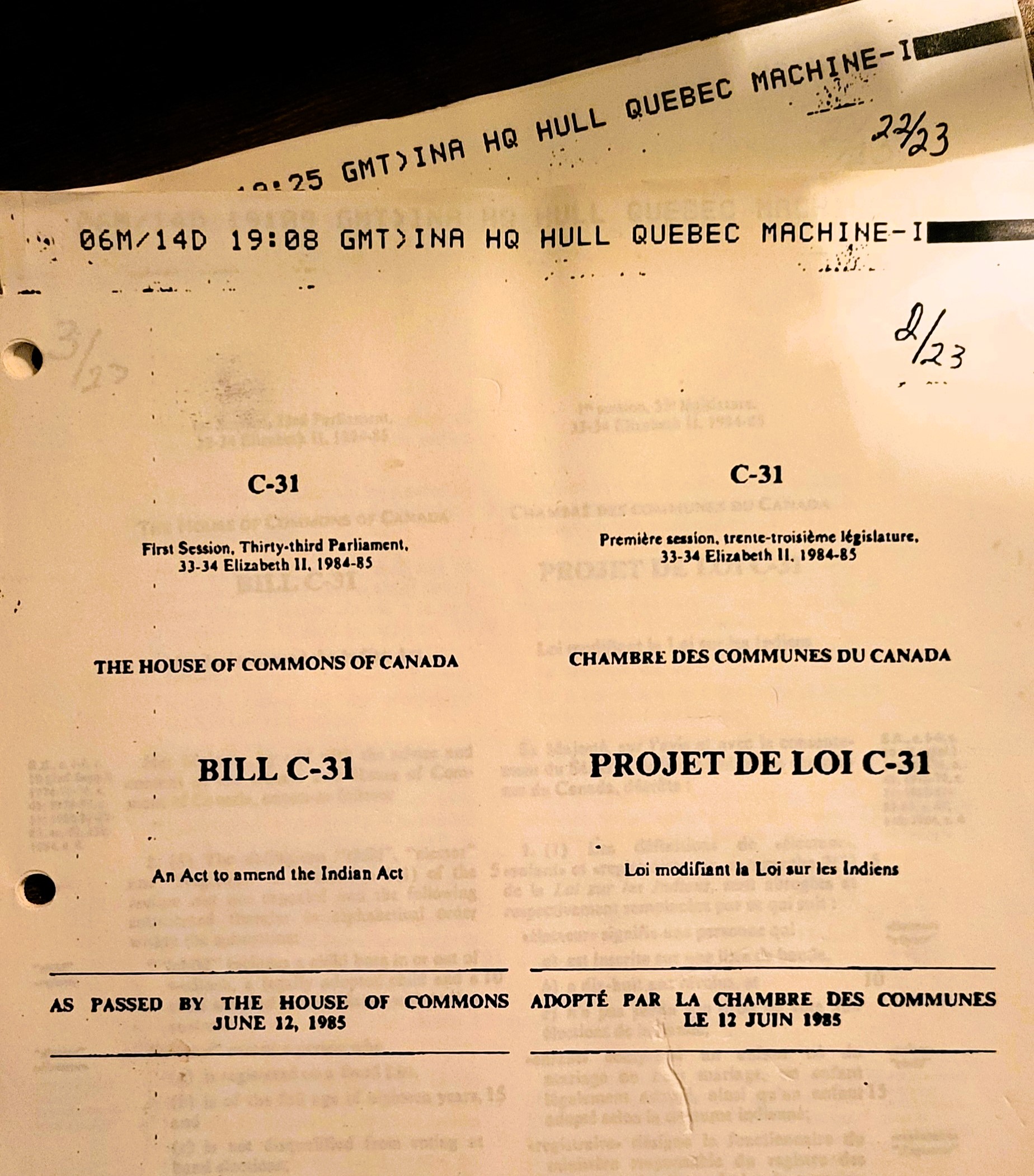 1985 Bill C-31 – An Act to Amend the Indian Act