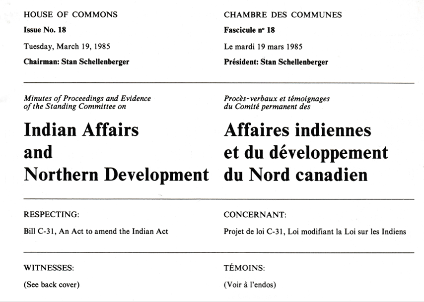 Parliamentary Standing Committee on Indian Affairs – Bill C-31, An Act to Amend the Indian Act