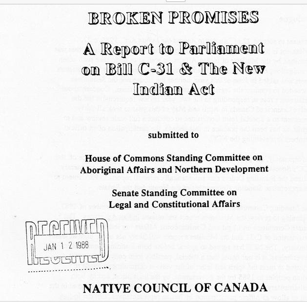 “On April 17, 1985, s.15 of the Charter comes into force and there is a consensus that this will expose the discriminatory provisions of the Indian Act to a successful legal challenge. The previous Liberal government did not want to face the uncertainty resulting from a judicial ruling…