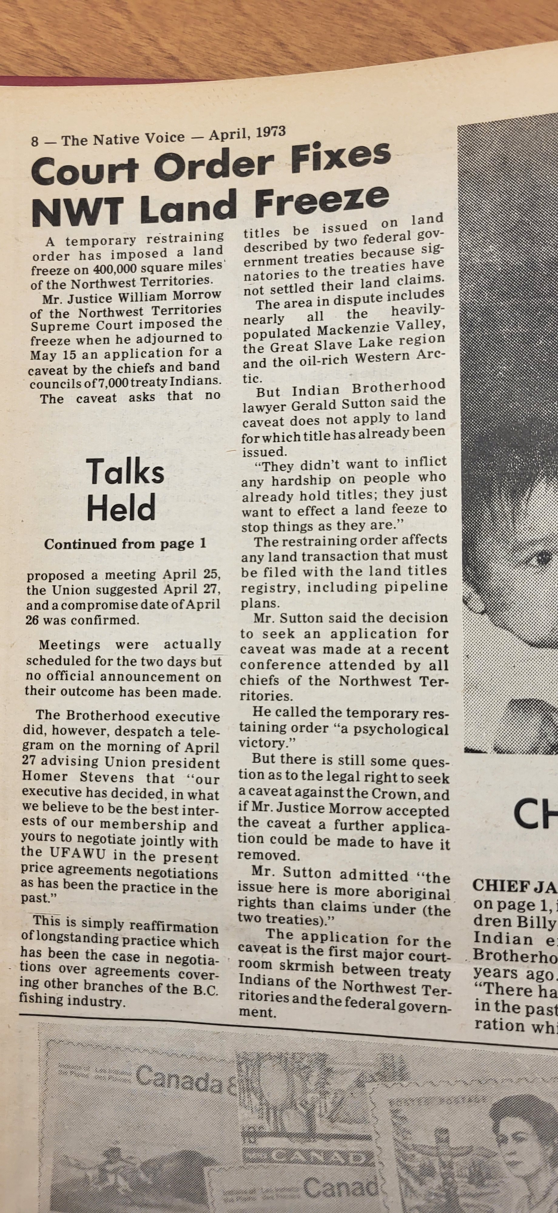 The problem for the Indian Nations is that the Land Claims Process is still the most active policy of Canada to obtain our consent for extinguishment of title. Once we agree to this process, participate in it and sign an agreement, we have strengthened Canada’s belief that this is the route to go and give her the incentive to pursue this Policy with increased vigour. So far the Indian Nations have participated in negotiations through this process, but Canada cannot yet point to any Indian Nation’s consent for Canadian ownership of the land. Once she has achieved consent even if it is Nation by Nation and not all at once, she will have met international standards for acquiring right to occupancy and title to land. This is the leverage of the Indian Nations in 1983.