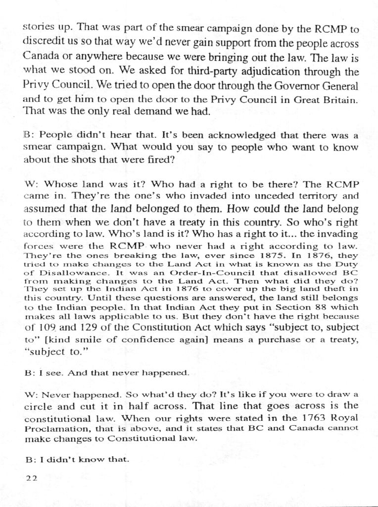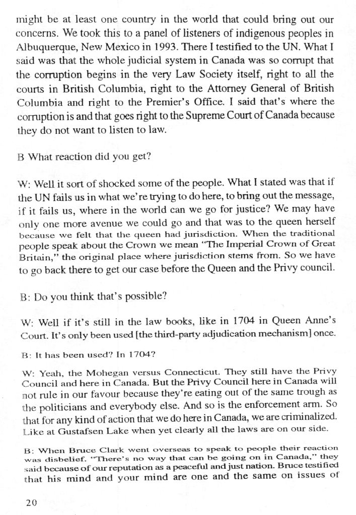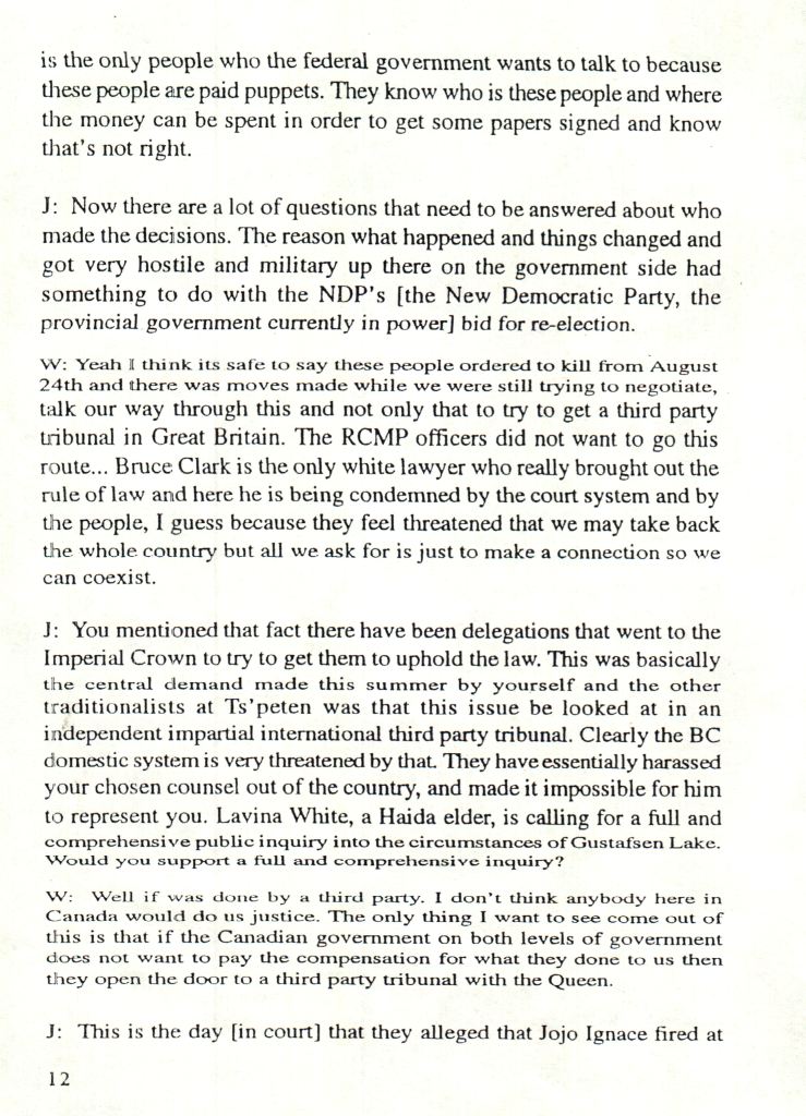 - GUSTAFSEN JURY STEERED TO CONVICT Settlers In Support of Indigenous Sovereignty June 30, 1997Bruce Clark interview re. Ts’peten Defense v. Delgamuukw case