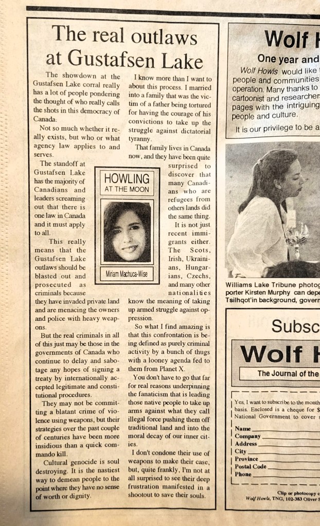 - Continental Commission Abya Yala Calls for Extension of Public Inquiry of the Gustafsen Lake Stand-Off