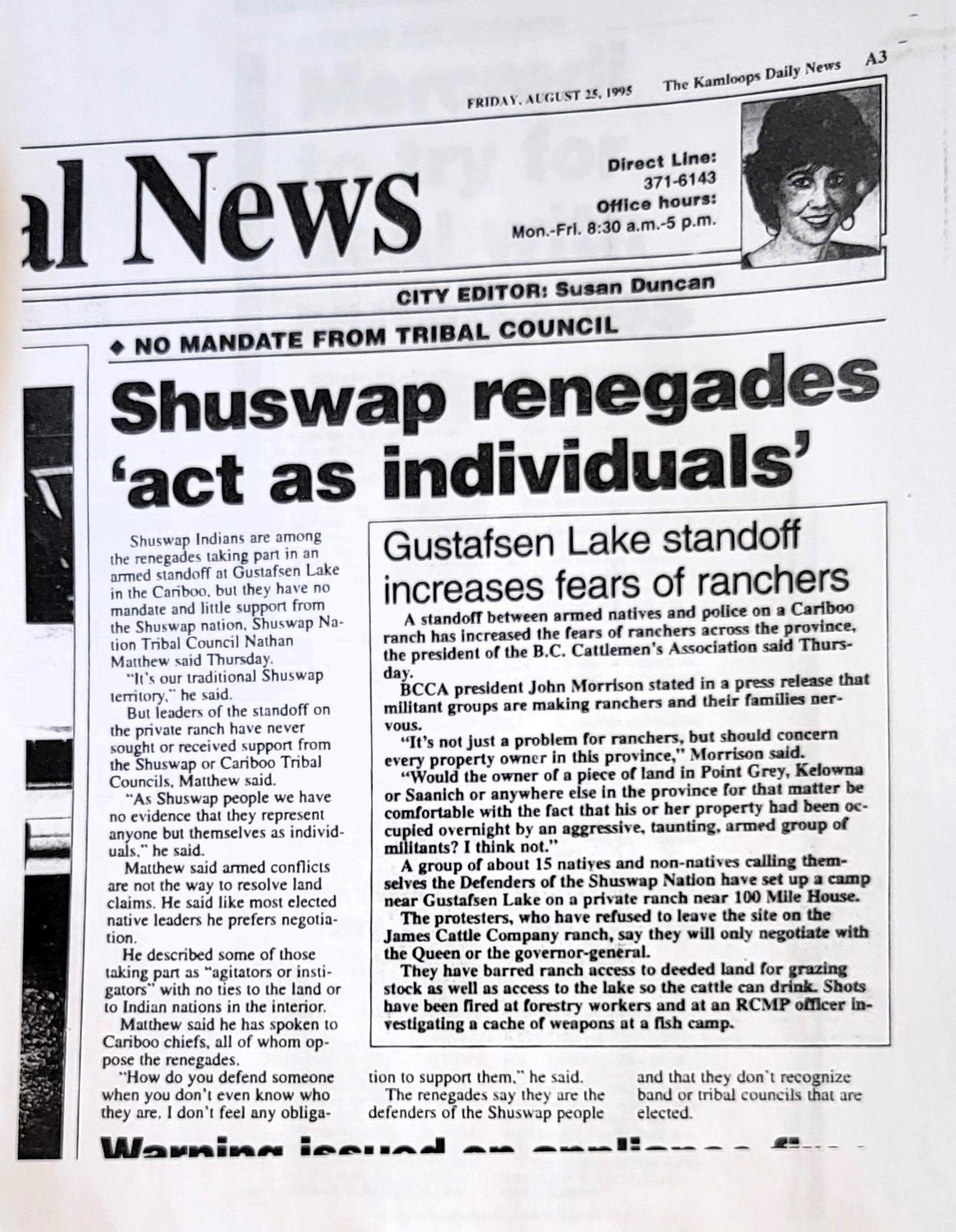 The following media reports were totally fabricated, as RCMP officers disclosed during the trial of the Gustafson Lake Sundancers.