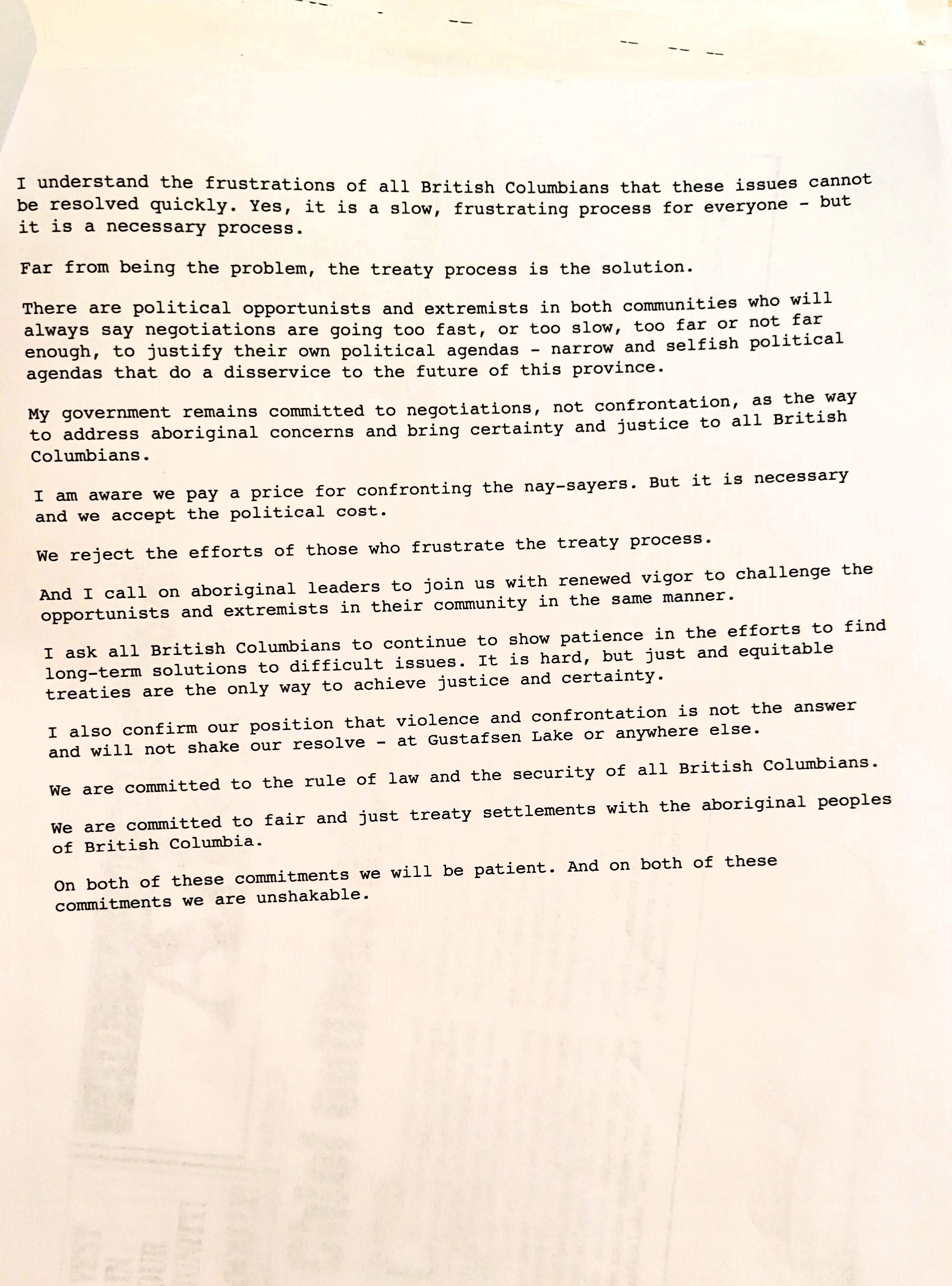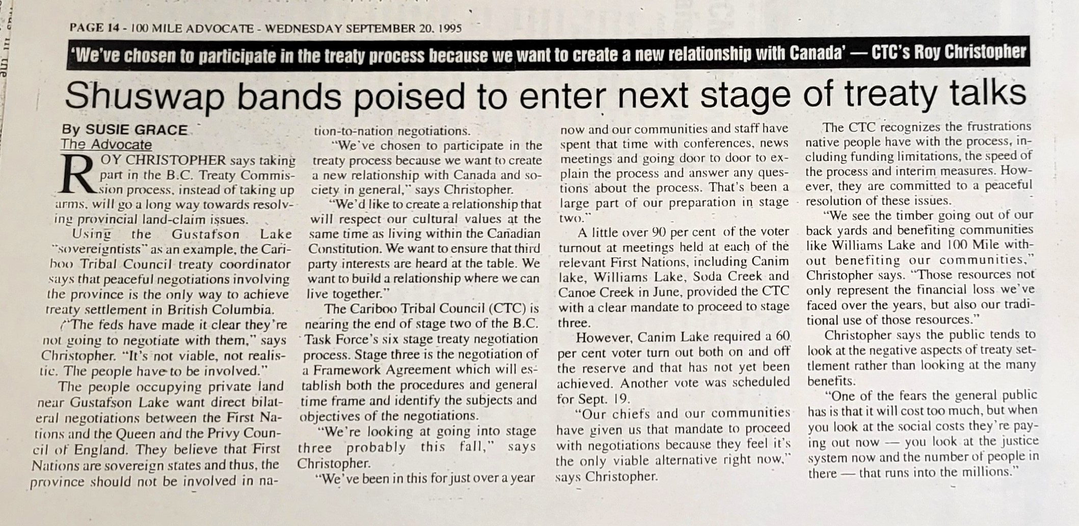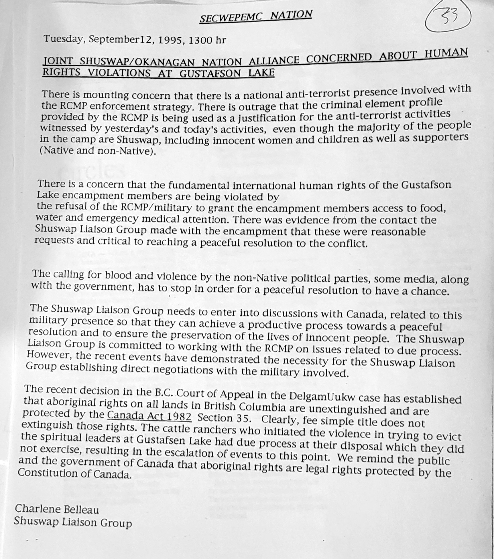 - Petition signed by Ts’peten Defenders, witnessed by Ovide Mercredi