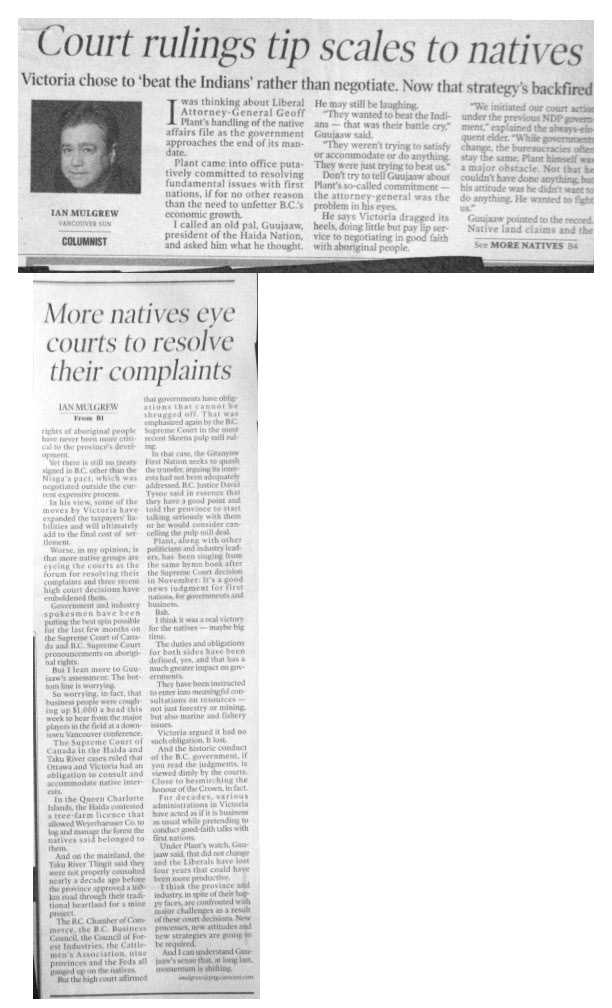 2004 Nov. “Ruling tips scales to natives.” VanSun. Mulgrew
